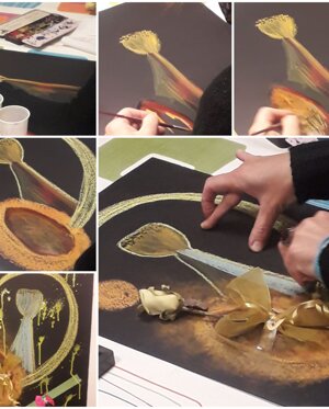 I Materiali artistici rappresentano l’ingrediente principale di una “tavola imbandita”- cibo e nutrimento - con il quale comporre un libero elaborato artistico. I materiali aiuteranno a rendere visibile l’inconscio e per la loro valenza simbolica intrinseca e l’attrattiva che ciascuno esprime per ognuno saranno la guida attraverso la quale iniziare il processo.