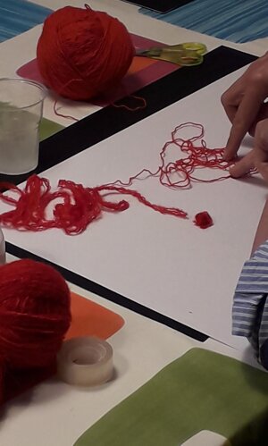 L’immersione visiva e tattile dei colori, consistenze e spessori producono differenti sensazioni e procedure come il disegnare, ma anche tagliare, legare, incollare, dipingere, ecc.