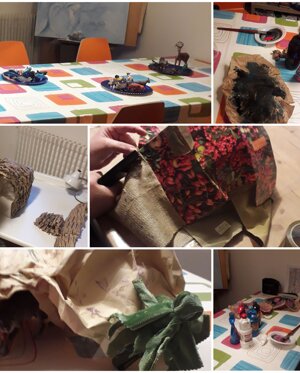 Materiali da scegliere, sperimentare, esplorare, da cui lasciarci chiamare, invitare anche per sperimentare usi diversi, insoliti di materiali d’uso comune: quello che esiste può essere guardato da tanti punti di vista, può avere valenze, significati, utilizzi diversi da quelli cui siamo abituati, può essere unito, assemblato, integrato con qualche cosa che prima era impensabile, per dar vita a qualche cosa di nuovo, più funzionale a come siamo in questo momento, capace di aprirci a nuove prospettive che prima non vedevamo.