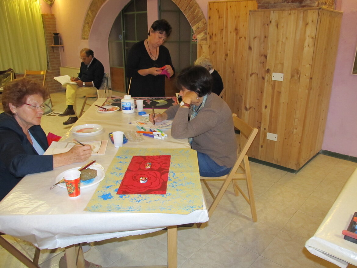 Il progetto è ideato in collaborazione con la Dr.ssa Emanuela Spotti, psicoterapeuta. Prevede la partecipazione a sedute, a cadenza quindicinale, per un piccolo gruppo. Nell’ambito di un progetto di cura è molto importante intervenire in modo multidisciplinare quando ci si trova ad affrontare problematiche complesse come un disturbo del comportamento alimentare. Un percorso di cura con l’arteterapia può integrare il lavoro psicologico a mediazione verbale perché l’attività creativa valorizza il linguaggio del corpo che è il veicolo primario di ogni esperienza sensoriale ed emotiva. Il clima tranquillo che si vive in atelier, la possibilità di immaginare, “dare forma e colore” alle proprie emozioni, senza l’uso della parola, consente di spostarsi dal piano razionale e di controllo a quello intuitivo/simbolico e accedere allo spazio interiore in modo libero, spontaneo e giocoso. L’attività manuale oltre a generare uno stato di benessere globale, infatti, attiva processi di conoscenza, una maggiore libertà espressiva, ascolto interiore che aiutano ad aumentare il livello di autostima e di consapevolezza personali e autentiche capacità relazionali. Per chi soffre di un disturbo alimentare può essere utile stabilire un nuovo rapporto con il corpo, vissuto come una presenza “ingombrante” e conflittuale. La creatività favorisce l’allentamento delle tensioni interne.